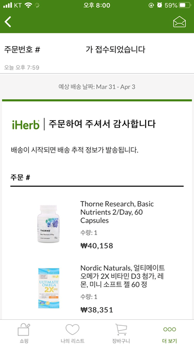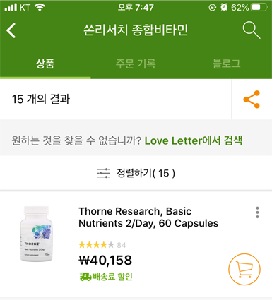 '쏜리서치', '라이프익스텐션' 등의 해외 종합비타민을 구매하는 루트는 여러가지가 있습니다. '아이허브', '오플닷컴', '쿠팡' 등의 방법이 있는데 제 경우에는 '아이허브(iHerb)'를 주로 사용하고 있습니다. 이번에는 복용하던 종합비타민과 오메가가 거의 떨어져서 아이허브 App을 통해서 구매를 했는데, 이 구매 과정에 대해 공유해 드리겠습니다.